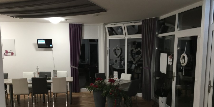 Zum weiteren Angebot gehören Gardinendekoration, Sonnenschutz innen und außen, Blendenschutz, Fußboden, Designbeläge sowie der Verkauf von Farben und Tapeten.